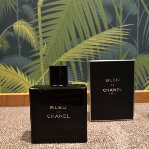 Aito Chanel Bleu de Chanel Eau de Parfum 100 ml. Tuoksu on pakattu mustaan lasipulloon, jossa on Chanelin logo korkin sisäosassa. Koitettu pari kertaa.
