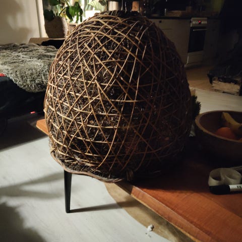Isompi rottinki valaisin. Johtoa lyhennetty mutta tähän toki saa ostettua uuden johdon. Vain nouto.