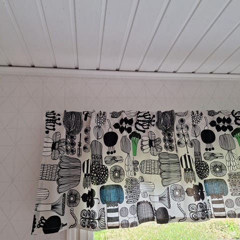 Puuvilla kankaasta ommeltu kappaverho