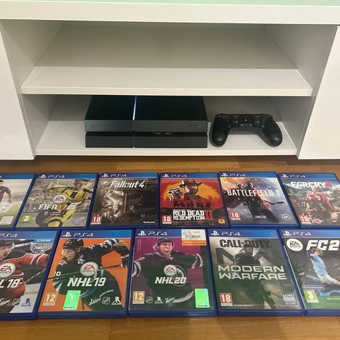 Sony PlayStation 4 -pelikonsoli. Musta väri. Konsolissa HDMI-, USB- ja verkkoliitännät. Mukana yksi langaton ohjain, ohjaimen latauskaapeli sekä verkkovirtakaapeli. 1000 Gt versio. Vähän käytetty ja hyvässä kunnossa.