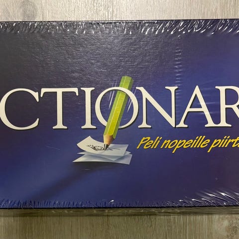 Pictionary lautapeli, jossa pelaajat piirtävät ja arvaavat sanoja ja lauseita. Sopii ryhmäpelaamiseen ja viihteeksi erilaisissa tilaisuuksissa.