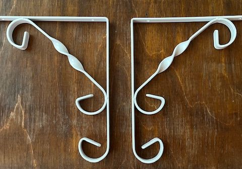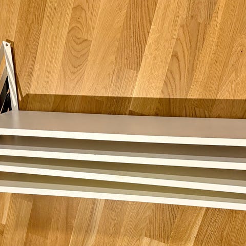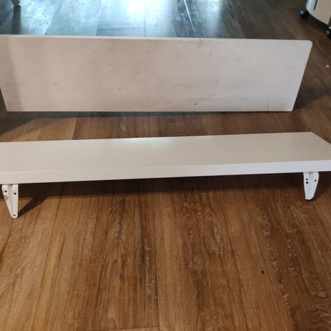 Irralliset valkoiset hyllylevyt lastulevystä ja 10kpl metallisia kannattimia.