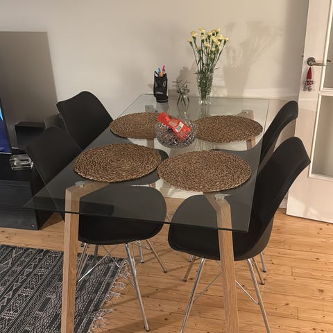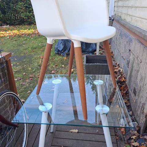 Myynnissä musta lasipöytä ja kaksi mustaa tuolia. Voin myydä myös erikseen.