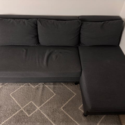 Mitat: pituus 218 cm, syvyys 80 cm, korkeus 77 cm.