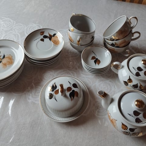 Teesetti jossa teekannu ja 6kpl mukeja lohikäärmekuvilla. Kannun vetoisuus 4dl ja mukien 1dl. Käyttämättömiä, kaikki ehjiä. Ovat kuin uusia. Kannun sisällä teesihti.