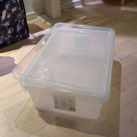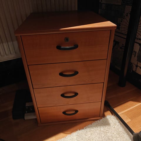 Toimiva muovinen laatikosto. Tässä on kolme laatikkoa ja jalkoina pyörät.