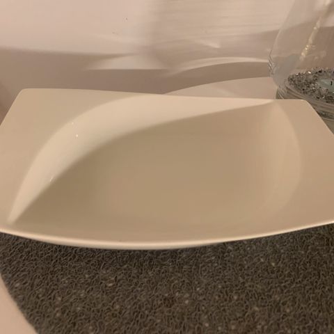 Uusi käytämätön valkoinen posliini kolmionmuotoinen lautanen, oikein hyvää laatu.