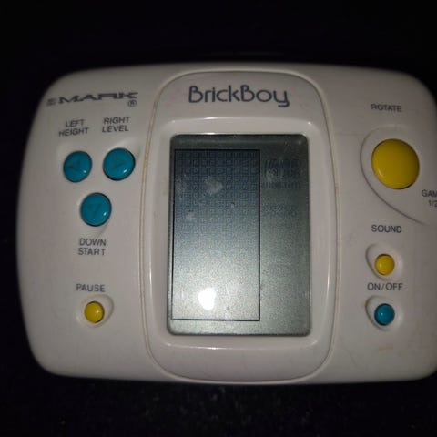 Brick Game sininen käsikonsoli, jossa on näyttö ja painikkeet mukaansatempaavaa pelikokemusta varten.