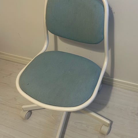 Lasten/nuorten työtuoli. Istumakorkeutta (38-51 cm) voi säätää kaasujousella. Maalipinnassa on kulumaa (näkyy kuvissa), mikä on huomioitu hinnassa.