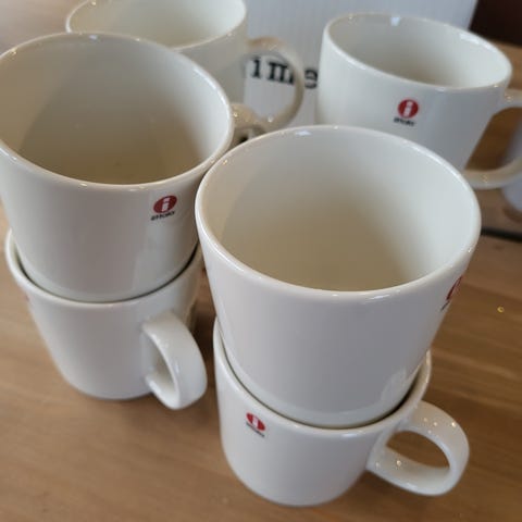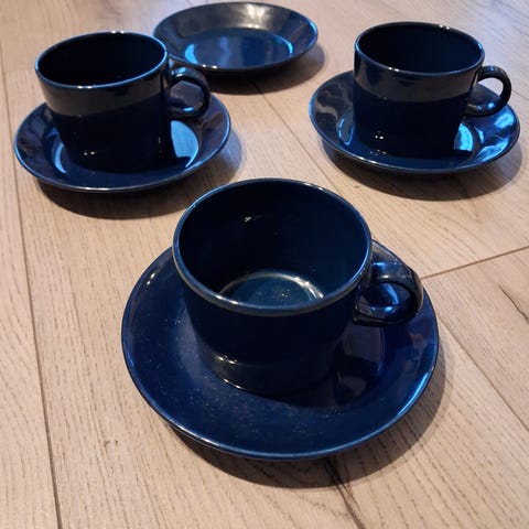 Eri tuotannosta Iittala ja arabia teema kahvikuppia 12 kappaletta. Hyvässä kunnossa en löytänyt moitteita. Vetoisuus noin 1,5 dl.