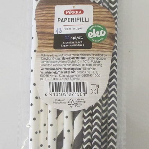 25 kpl mustavalkoisia raidallisia paperipillejä. Materiaali paksua pahvia / kartonkia, halkaisija n. 0,5 cm ja pituus n. 19,5 cm. Paketissa on 25 kpl pillejä. Pillit ovat käyttämättömiä ja siten kuin uusia. Hinta 3€. Nouto Espoo (esim. Espoontori / Lippulaiva / Sello). Voin myös postittaa, jolloin postikulut lisätään hintaan. Tori-diili tai tavallinen postitus.