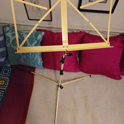 Kuvan nuottiteline. Taitaa olla käyttämätön. Monipuoliset säädöt. Oiva joululahja. Lohjalla.