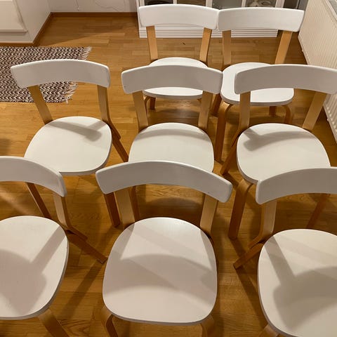Myydään 2 kpl Artek K35 työtuoleja. Normaalia käytön jälkeä. Tuolit nyt Taivassalossa, toimitus Turun alueelle sopimuksen mukaan. Hinta kahdelta kappaleelta yhteensä.
