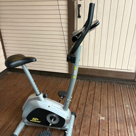 Ellyp Tech CT3 kuntopyörä, jossa on säädettävä vastus ja digitaalinen näyttö. Laite soveltuu kotikäyttöön ja tarjoaa erilaisia harjoitusohjelmia. Musta ja hopeanvärinen runko, jossa on jalat ja polkimet tukevassa rakenteessa.