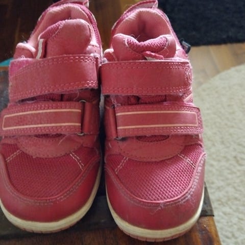 Uudet, mutta koiralogon hattu yhdessä kengässä hieman repsottaa. Tekstiili liimalla saa korjattua. Kts. kuva 5.
