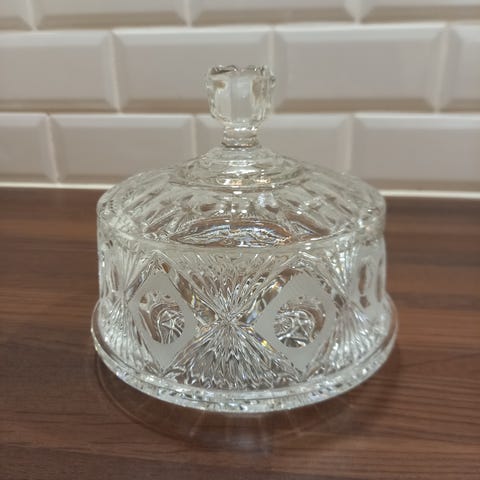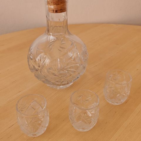 Kristallikarahvi, joka on sopiva esim. salaattikastikekaatimeksi. Kork. ilman korkkia 13 cm. Nouto Launialasta.