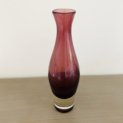 Myydään maljakko Nimipäivä. Suunnitellut Aimo Okkolin. Maljakon väri lila. Maljakko on 23 cm korkea. Kunto erinomainen.