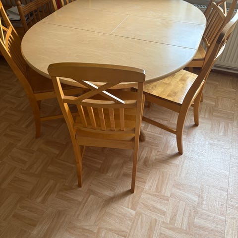 Jatkettava ruokapöytä ja tuolit 4kpl