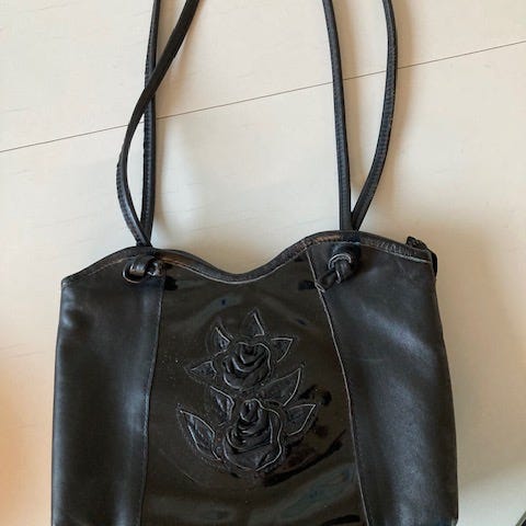 A black leather shoulder bag from the early 2000's. Very well condition, two zipper pockets.