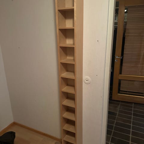 Jokusen vuoden vanha, mutta edelleen hyväkuntoinen seinälle kiinnitettävä kaappi.