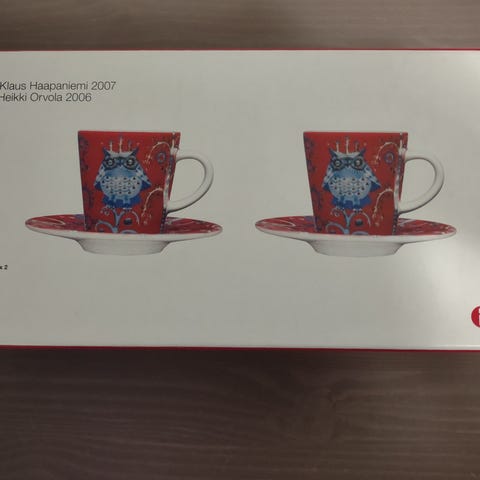Iittala Taika sininen kahvikuppi ja lautanen. Uuden veroinen. Kupissa tarrat tallessa.