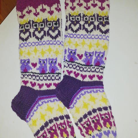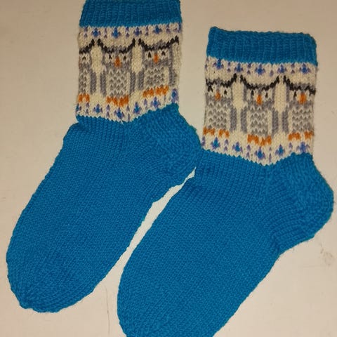 Villasukat Nalle langasta. Varren mitta 33 cm ja jalkaterä 24 cm. Postikulut tarvittaessa 6e s-kokoisessa paketissa tai vaihtoehtoisesti Toridiilin kautta