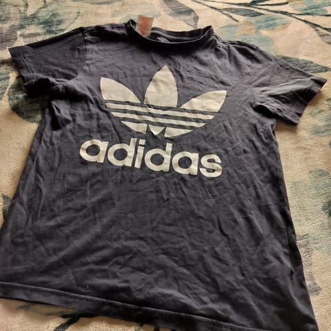Paljon pidetty ja pesty paita. Pesu näkyy, mutta paita on ehjä.