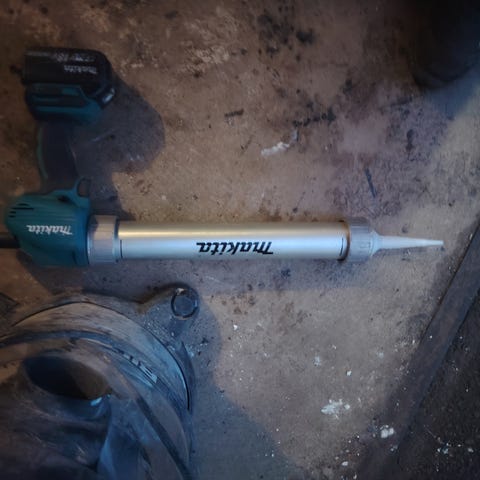 Työntötanko puolestaan on 600ml putkille tarkoitettu eli liian pitkä 300ml patruunoille, mutta ei haittaa käyttöä kunhan esim. teipillä merkkaa mitä pidemmälle ei kannata pusertaa.