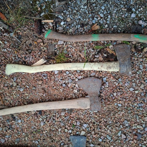 Vanhoja kirveen teriä ja kokonaisia kirveitä, billnäsiä taitaa olla 2-3kpl.