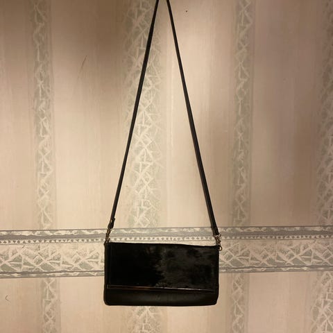 Pieni iltalaukku / käsilaukku, joka valmistettu USAssa. Leveys 10cm, korkeus 10cm ja syvyys 6cm. Siisti, mutta käytetty. Niittisomisteet sivuissa. Tarkempaa valmistajaa en tiedä eikä google search osannut auttaa.