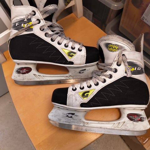 Uudenveroiset GRAF 101 Super luistimet. Luistimissa ei ole paljoa käytön jälkiä muualla kuin terässä, eikä siinäkään paljoa.