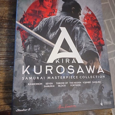 Dvd-boksi, joka sisältää viisi Akira Kurosawan elokuvaa: Ikiru, I Live In Fear, The Lower Depths, Red Beard, Dodes'ka-den.