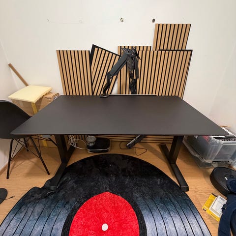 Myydään siistikuntoinen musta sähköpöytä. Pöydän korkeutta voi säätää sähköisesti, joten se sopii hyvin sekä istuma- että seisomatyöhön.