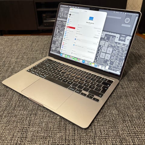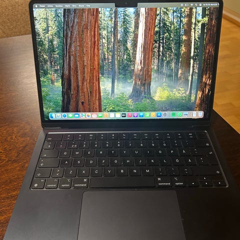 Apple MacBook Air kannettava tietokone, väri roosa/kulta. Käyttöjärjestelmänä macOS Sequoia 15.3.1. Muisti 8 GB. Tallennustila SSD. Akku 98 % kunnosta, optimoitu akun lataus käytössä.