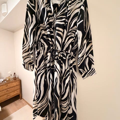 Myynnissä pilkkukuvioinen Gestuz-merkin paitamekko, koko 38. Mekossa on klassinen paitakaulus, rintataskut ja säädettävä kiristysnyöri vyötäröllä, jolla saa muokattua istuvuutta täydelliseksi. Monikäyttöisyytensä ansiosta se sopii mainiosti niin arkeen kuin juhlavampiinkin tilaisuuksiin. Erinomainen kunto.