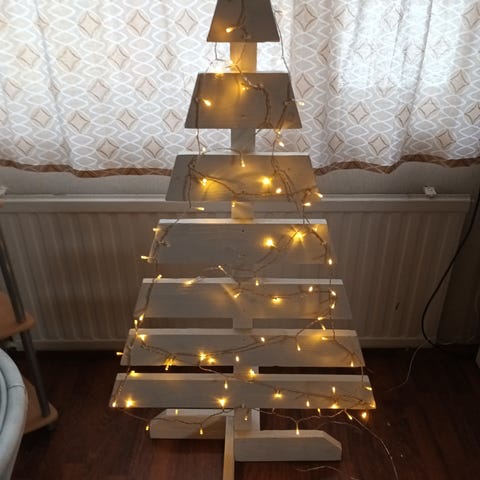 Väriä vaihtava, akulla ja pistorasialla toimiva valokuitukuusi. Vihreä ilman käynnistystä. Lisätoimintona punaiset sydämet, jotka voi kytkeä pois. Korkeus 60+cm