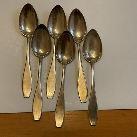 Kuvien hopeiset 830 ruokalusikat, kaiverrukset jokaisessa takana.