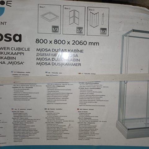 Ekvip suihkukaappi, mitat 80x80 cm. Kaapissa on kirkkaat lasiseinät ja alumiinirunko. Kaappi noin 6kk vanha, käytetty väliaikaisena suihkuna kylppärirempan yhteydessä. Seinät ei ole edes porattu kiinni pohjaan eikä ole käytetty silikonia missään. (helpottaa purkamista)