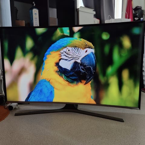 Myynnissä Samsung 55 tuuman UE55AU7172UXXH -televisio. TV on erittäin hyvässä kunnossa ja toimii moitteettomasti. Suojamuovit ovat yhä paikoillaan, eli laite on pysynyt siistinä.