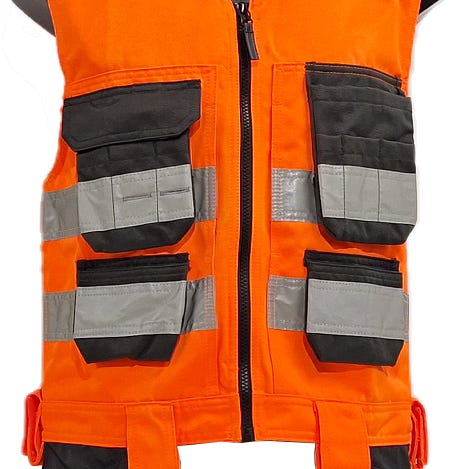 Hellyn laadukas riipputaskuliivi punaisessa huomiovärissä (kuvissa oranssimpi kuin oikeasti) vaadituilla heijastimilla. Uusi (laput kiinni ja pussissaan).