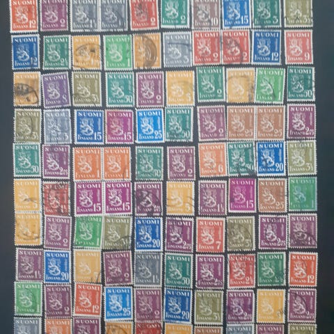 Saarisen mallin postimerkit 1917-. (mm. 11/2mk merkissä postitorvi vesileima). 12 erilaista merkkiä yhteensä 9 euroa.