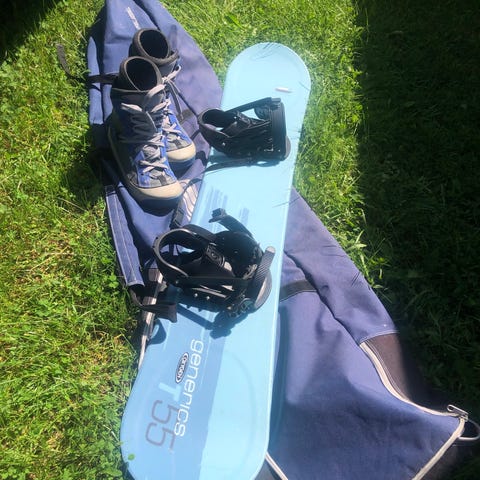 Stufin lumilauta setti. Hyvässä kunnossa. Vähän laskettu. Vähän lohjennut toisesta kärjestä, ei vaikuta laskemiseen. Lohkemasta yksi kuva.