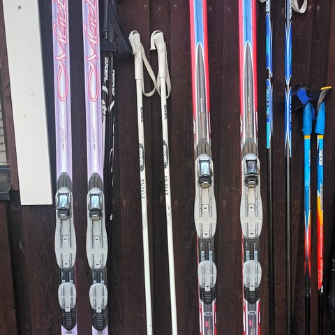 Suksissa valmiina asennuskiskot siirrettäville NIS siteille.