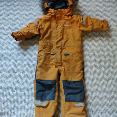 Hyväkuntoinen toppahaalari. Alkuperäinen koko 80, mutta jatkettavat saumat avattu joten vastaa paremmin kokoa 86.