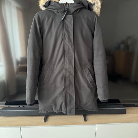Hyväkuntoinen takki, ainoa ”vika” on merkille tyypillinen kuluma saumoissa. Koko M, voin myös vaihtaa L/XL kokoiseen vastaavaan. Ostettu Stockmannilta, kuitti tallessa.