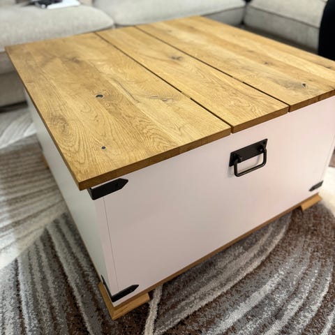 Iso pöytä leveys 76cm ja korkeus 48cm.