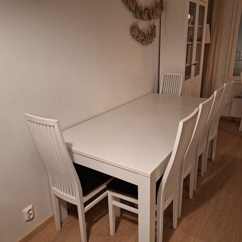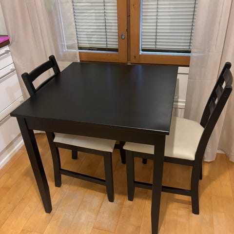 ANNETAAN EKA HAKIJALLE!!Annetaan Ikean ruokaryhmä pieni pöytä ja 4kpl tuoleja. Tuolit menee pöydän sisään. Eli sopii hyvin pieneen tilaan.