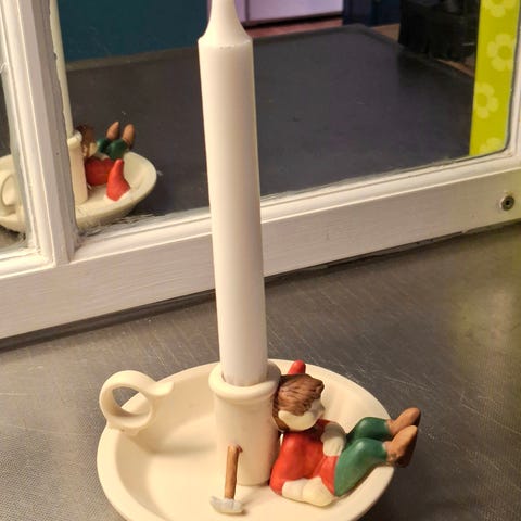 Myynnissä kuvien keraaminen yökynttilänjalka. Pituus on 12 cm, halkaisija on 17,5 cm. Lähetän ja kulut ovat 6,50 e, kulkeutuu myös Turkuun ilmaiseksi