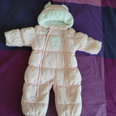 Luhdan sininen untuvatäytteinen lasten haalari, koko 68. Reilu mitoitus, mutta pienempi kuin äitiyspakkauksen haalari. Kääntöhihat ja lahkeet löytyy ja saa myös makuupussiksi vetoketjujen avulla.