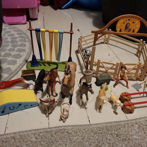 Schleich: pilttuu, heppoja, koiria ja tarvikkeita